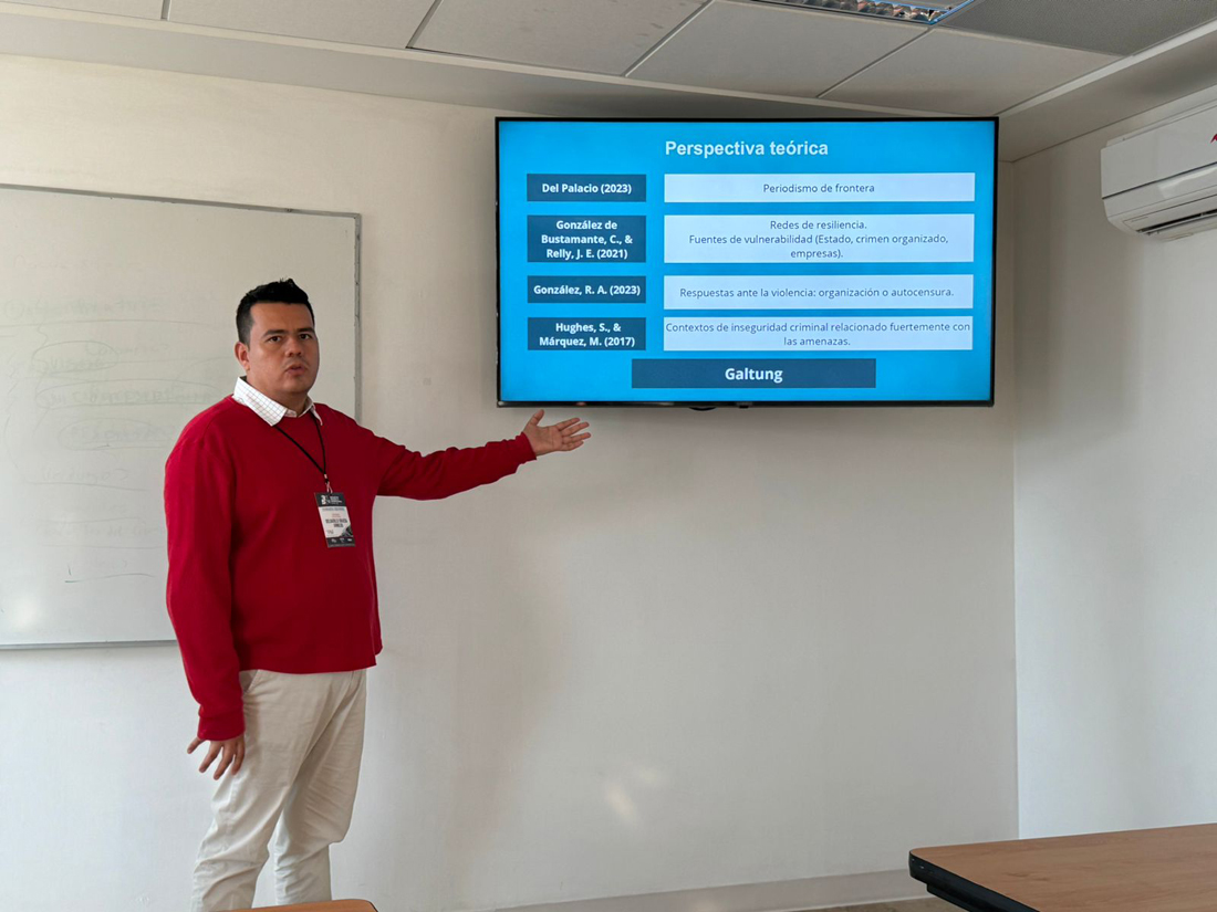 La Dra. Aideé Arellano Ceballos y el Dr. Arnoldo Delgadillo Grajeda presentaron la ponencia: “Ser periodista en la ciudad más violenta del mundo. Aproximación desde una experiencia dialógica”, que abordó la doble vulnerabilidad que enfrentan los y las periodistas en Colima. “El ejercicio periodístico en contextos violentos exige una adaptación constante, tanto en lo profesional como en lo personal”, explicaron los investigadores, resaltando los desafíos que enfrentan los comunicadores para equilibrar la seguridad personal con su labor informativa.