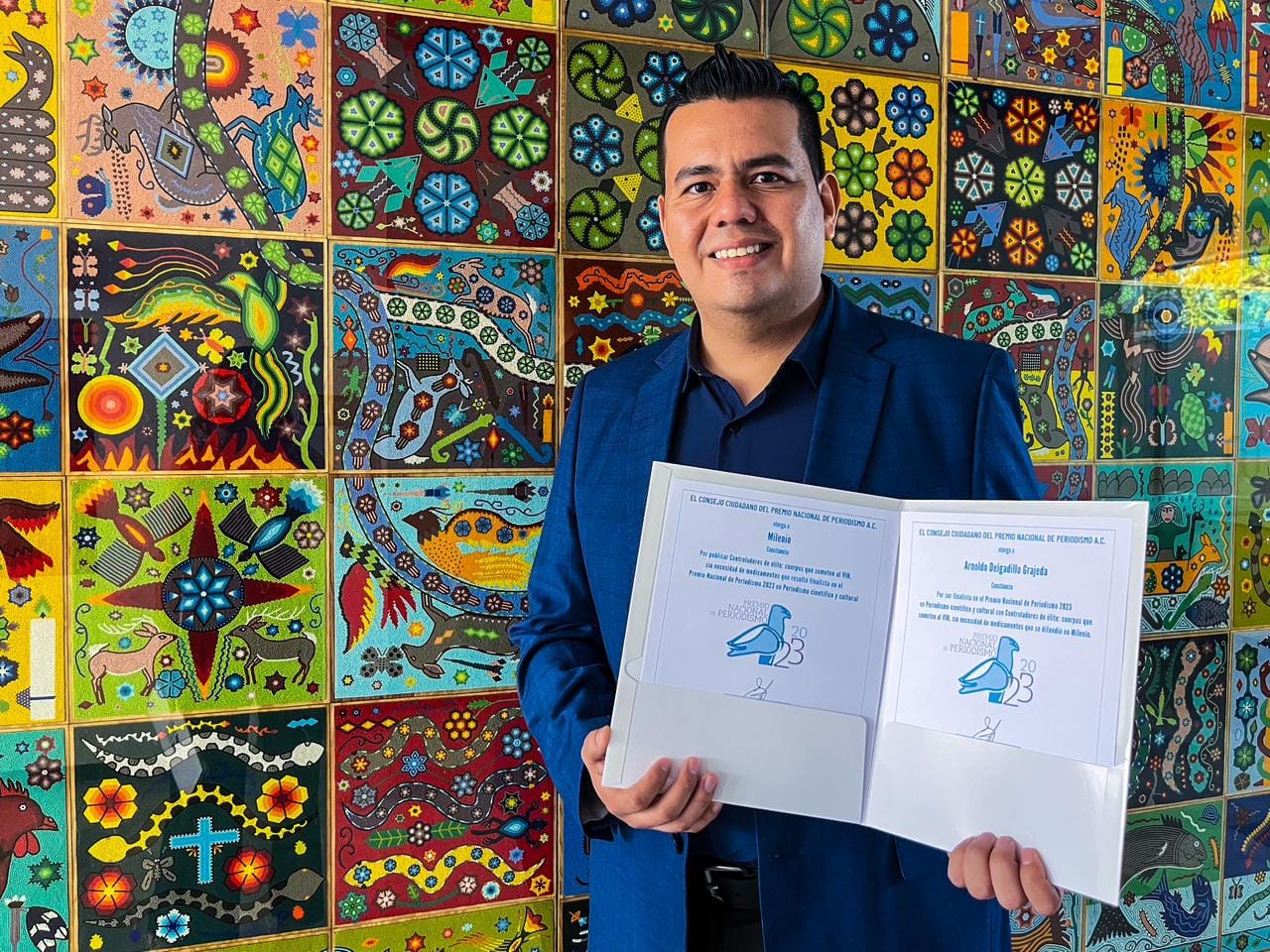 Arnoldo Delgadillo Grajeda, fue reconocido como finalista del Premio Nacional de Periodismo 2023, con el texto «Controladores de élite: cuerpos que someten al VIH, sin necesidad de medicamentos», publicado en Milenio diario, en su edición nacional. ![]()